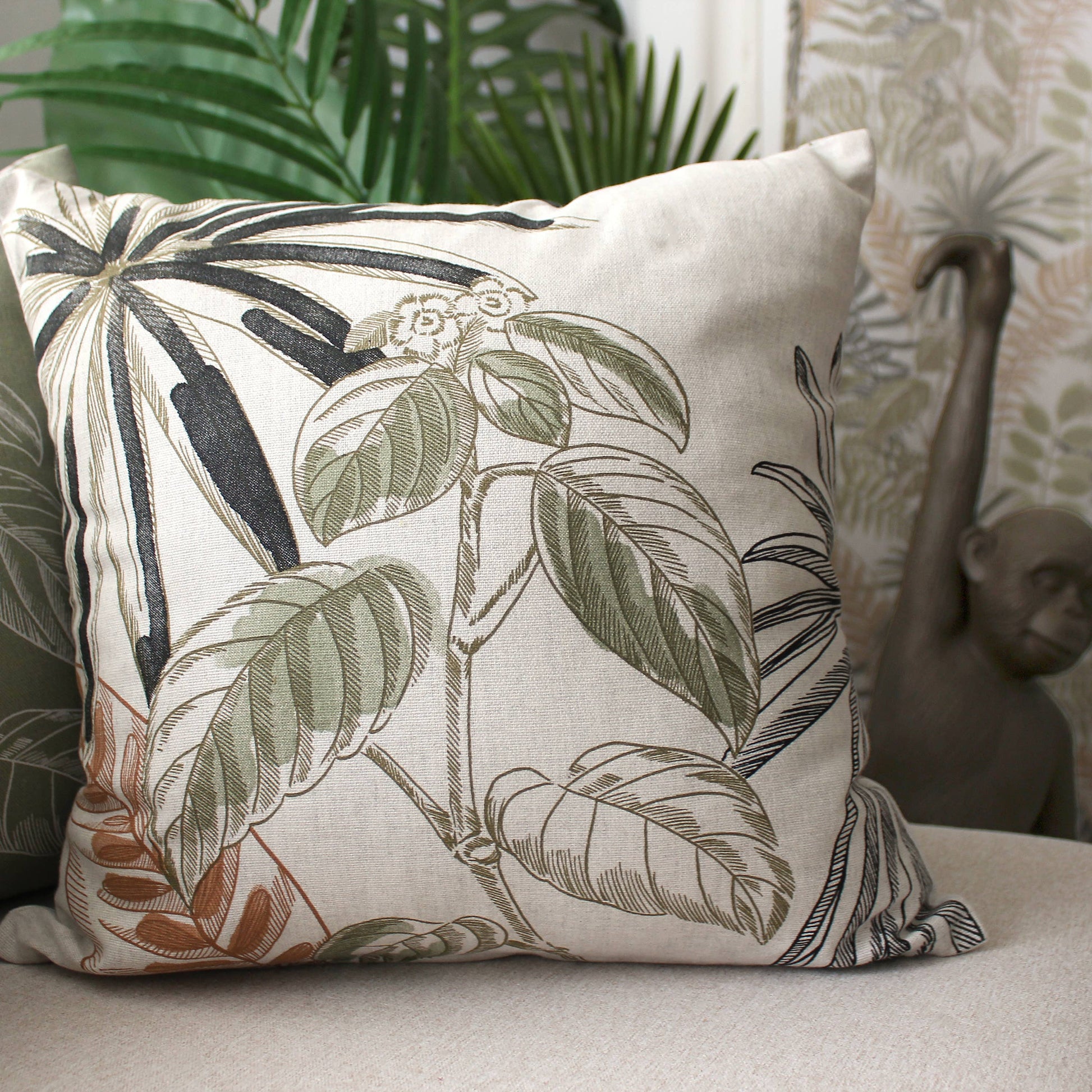 Coussin carré à motif, 40x40cm, Déhoussable, Jungle Tropical
