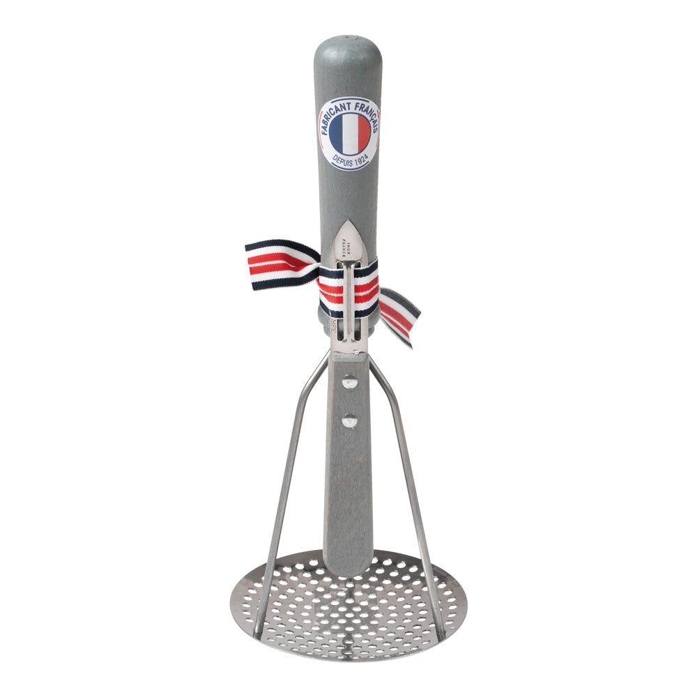 Ensemble presse purée et éplucheur gris en bois de hêtre